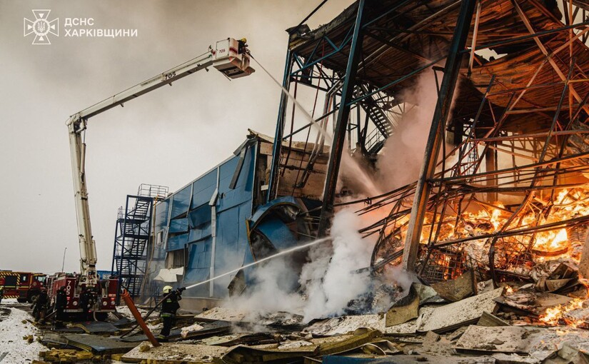 Пострадала промышленная зона в пределах Харьков — города, регулярно оказывающегося под ударами, независимо от того, идет ли речь о военных объектах, жилых кварталах или давно законсервированных заводах.